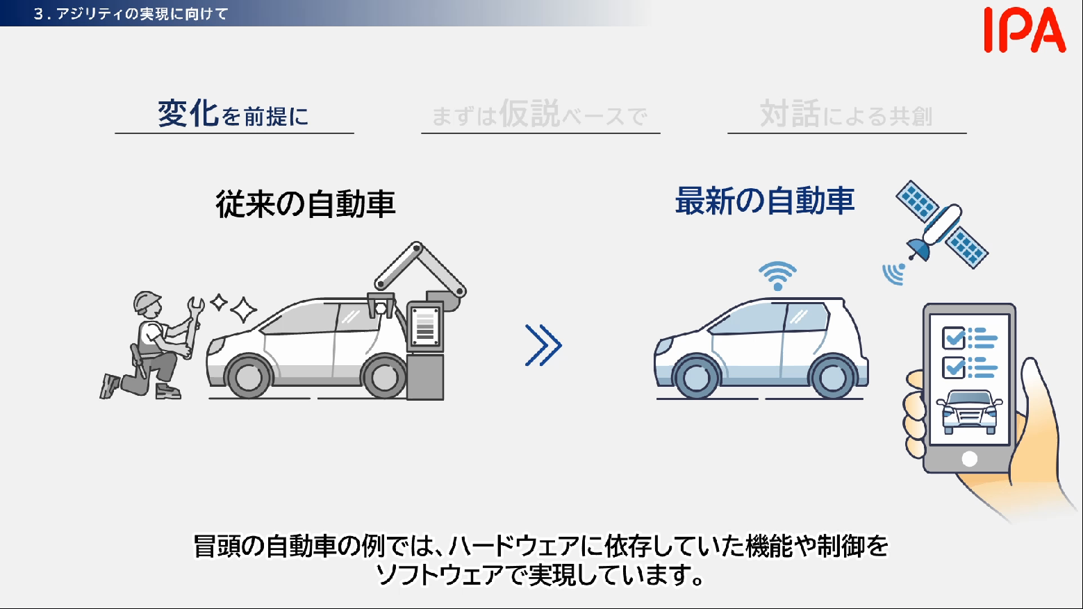 近年、SDV(Software-Defined Vehicle)に代表されるように、ハードウェアを制御するソフトウェアを継続的に更新し、不確実性や変化するニーズに柔軟かつ俊敏に対応する「Software-Defined」という考え方が、さまざまな分野で注目を集めています。現代は「VUCA(変動性・不確実性・複雑性・曖昧性)の時代」とされ、予測困難な状況に迅速かつ柔軟に対応するための「アジリティ(機敏性)」の重要性が、ますます高まっています。