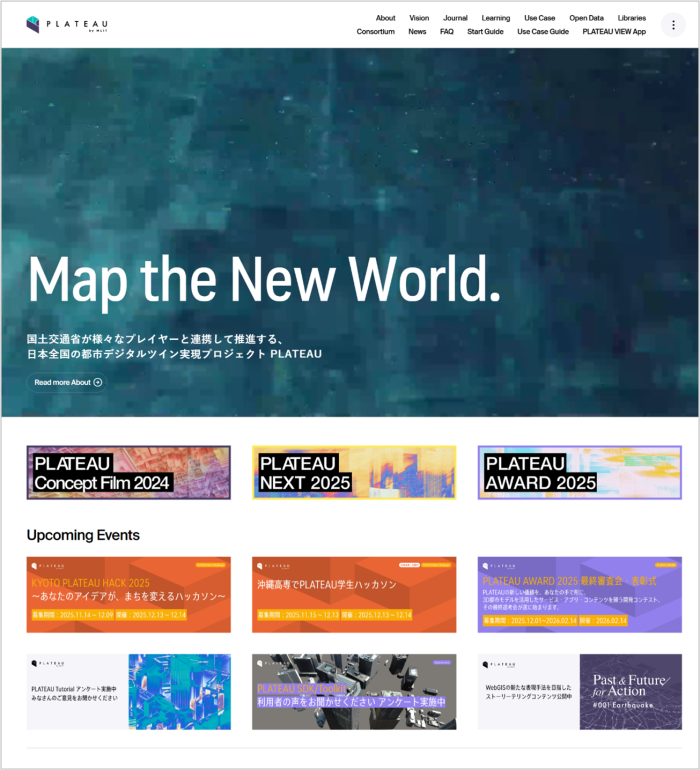 Project PLATEAU promotes the utilization of 3D urban space models as open data across diverse fields such as urban planning, disaster prevention, and traffic simulation. The project is designed with collaboration between local governments, private companies, and research institutions as a prerequisite, and active pilot testing and joint development are underway. Its high-precision 3D urban models, which include building shapes and terrain information, serve as reference cases for building digital twins of cities both domestically and internationally. Improvements based on user feedback are continuously implemented, making it a notable, pioneering initiative in the open sharing of spatial information.