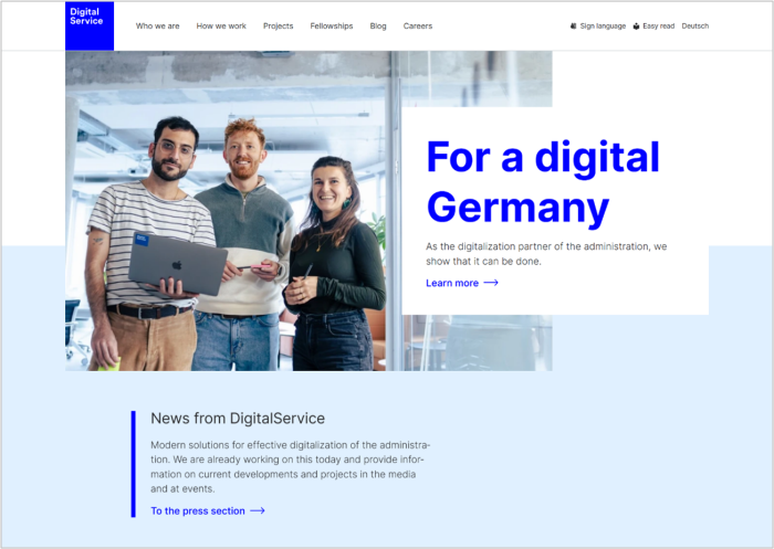 DigitalService GmbH des Bundes is an organization promoting the digitization of administrative services for the German government. It aims to improve user experience while enhancing operational efficiency through various projects. Emphasis is placed on user-centered service design, such as improving online application forms and integrating the design of administrative portals. The organization prioritizes the integration of design and technology, with careful consideration given to accessibility and multilingual support. Active collaboration with private-sector UX experts significantly contributes to improving the quality of administrative services.