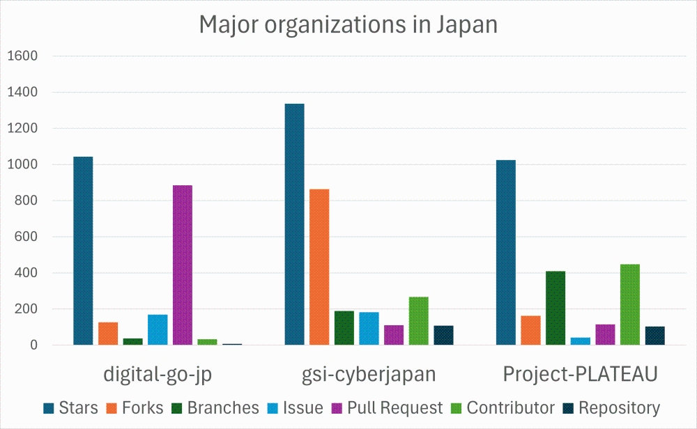 Another noteworthy aspect of OSS in Japanese government is the high number of stars, which indicates the level of attention. For example, while the Digital Agency had only seven repositories at the time of the survey—a relatively small number—the number of stars, at 1,043, is exceptionally high. This may reflect the latent enthusiasm of external engineers who want to “be involved in national projects,” “help out,” or “keep an eye on them.”