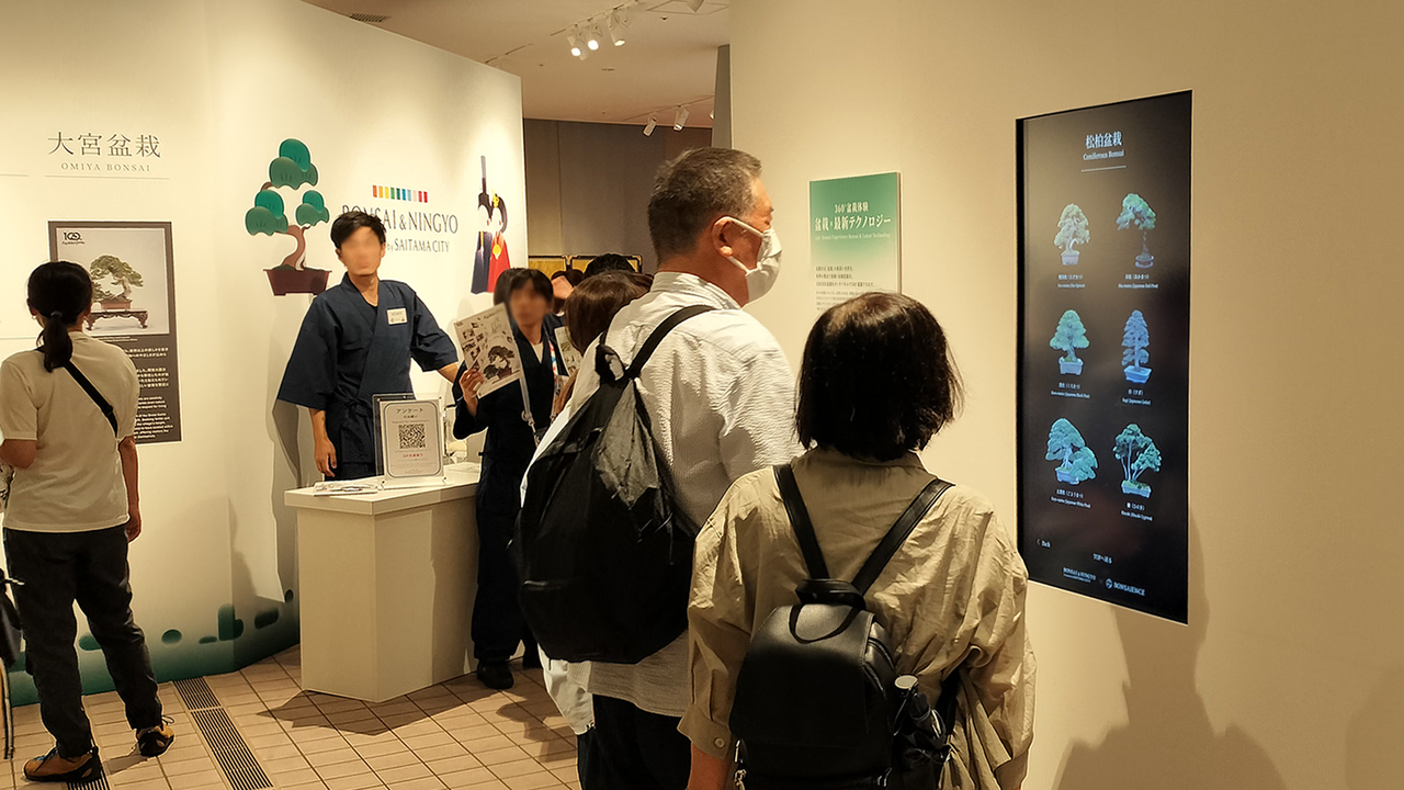 大宮の伝統産業である盆栽を紹介する企画の一環として、「BONSAIENCE Museum」を展示。画面をタッチして大宮盆栽美術館が所蔵する盆栽の3Dモデルを操作し、さまざまな方向から眺められる体験を提供。