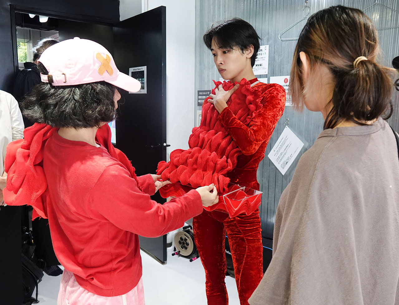 衣装合わせの現場にはRemi Takenouchiさん、KANEHIROさん、アオイツキが揃い、試行錯誤を重ねた