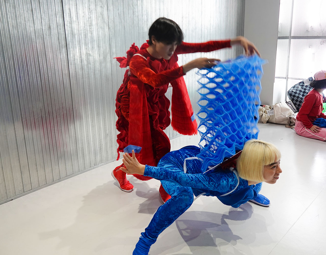 アオイツキの二人が布のギミックを効果的に見せるパフォーマンスのアイデアを出していった