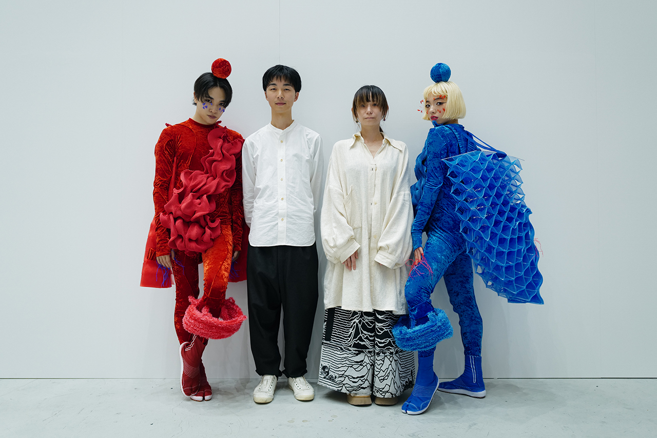 Remi万博は誰もが参加できるイベントなので、みんなが見て楽しく、元気になってもらいたいという気持ちが私のなかにありました。私にとって、服はひとを元気にするもので、“命”なんです。衣装でもそれを表現したかったし、みんなにもパワーを与えられるといいなと思っています。今回、新しい技術から生まれた素材に触れてみて、これまでの素材や縫い方では不可能だったことが可能になったのを実感しました。これからさらに進化していくことで、可能性も広げていけることが楽しみです。