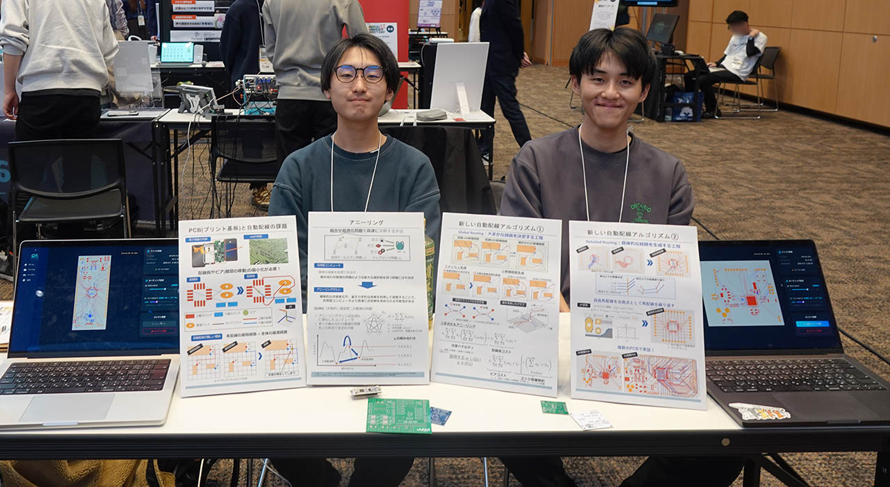 アニーリングマシンを活用した電子基板の自動配線ソフトで出展。「量子のことは何も知らない方が興味をもって話を聞いてくれたり、基板設計に詳しい方からフィードバックがもらえたり、出展してとてもよかったです。」