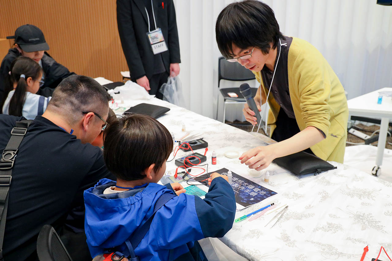 展示ブース会場では、未踏修了生による4つのワークショップを開催。楽しく学べるプログラムをたくさんの人が体験していました。