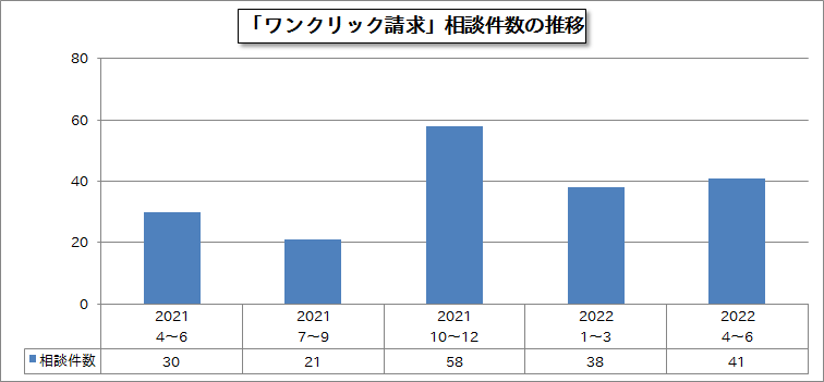 今四半期は「ワンクリック請求(脚注6)」に関する相談が前四半期から約7.9%増の41件寄せられました。