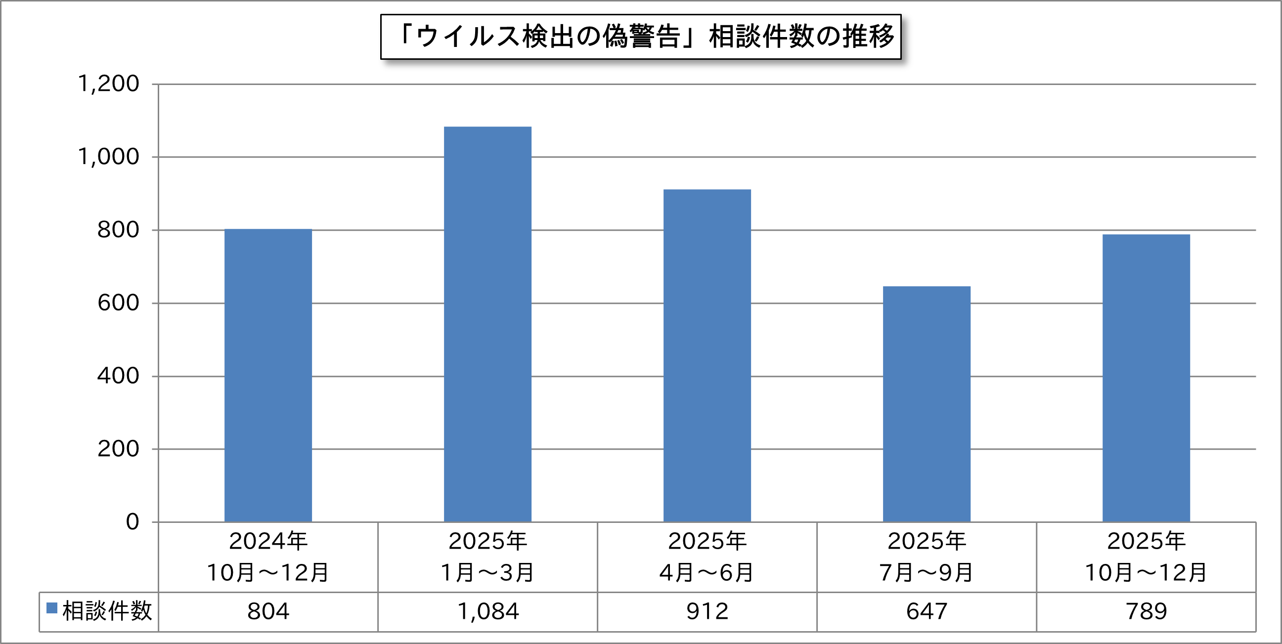 「ウイルス検出の偽警告」相談件数の推移