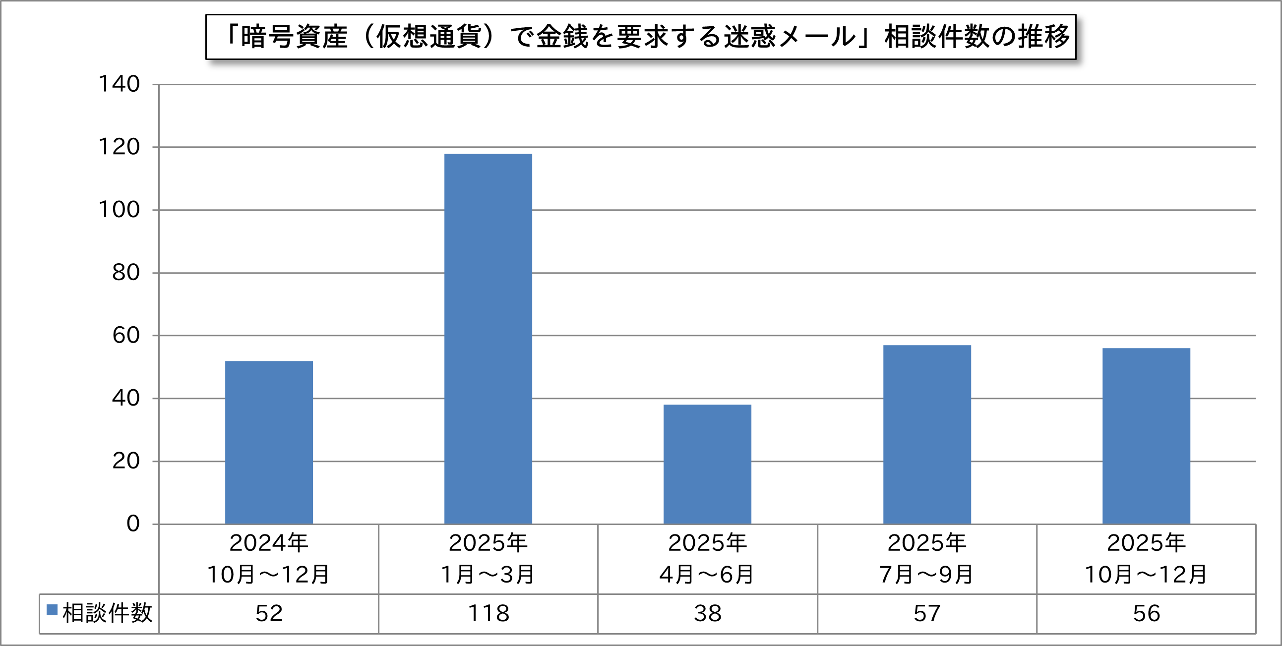 「暗号資産(仮想通貨)で金銭を要求する迷惑メール」相談件数の推移