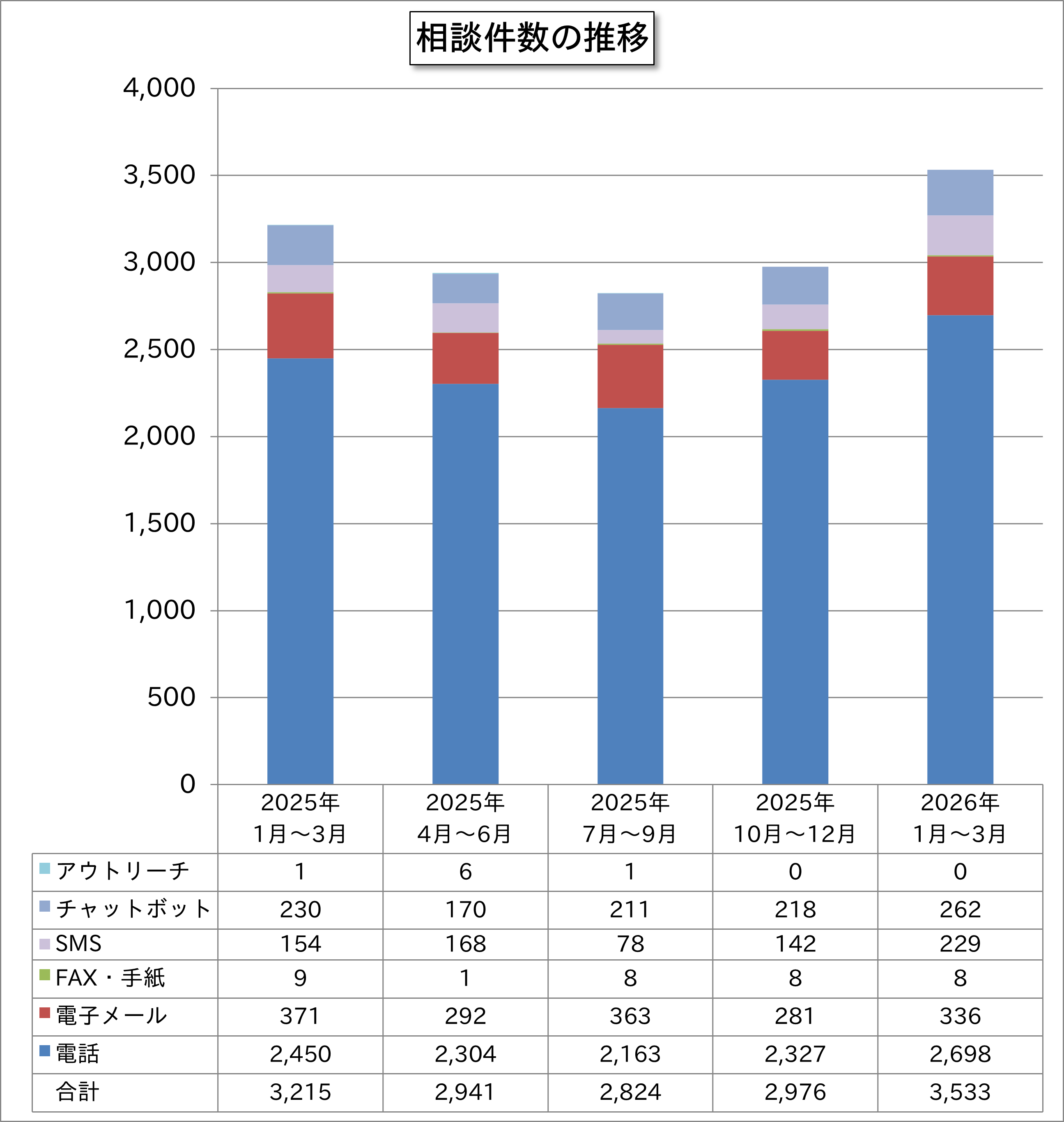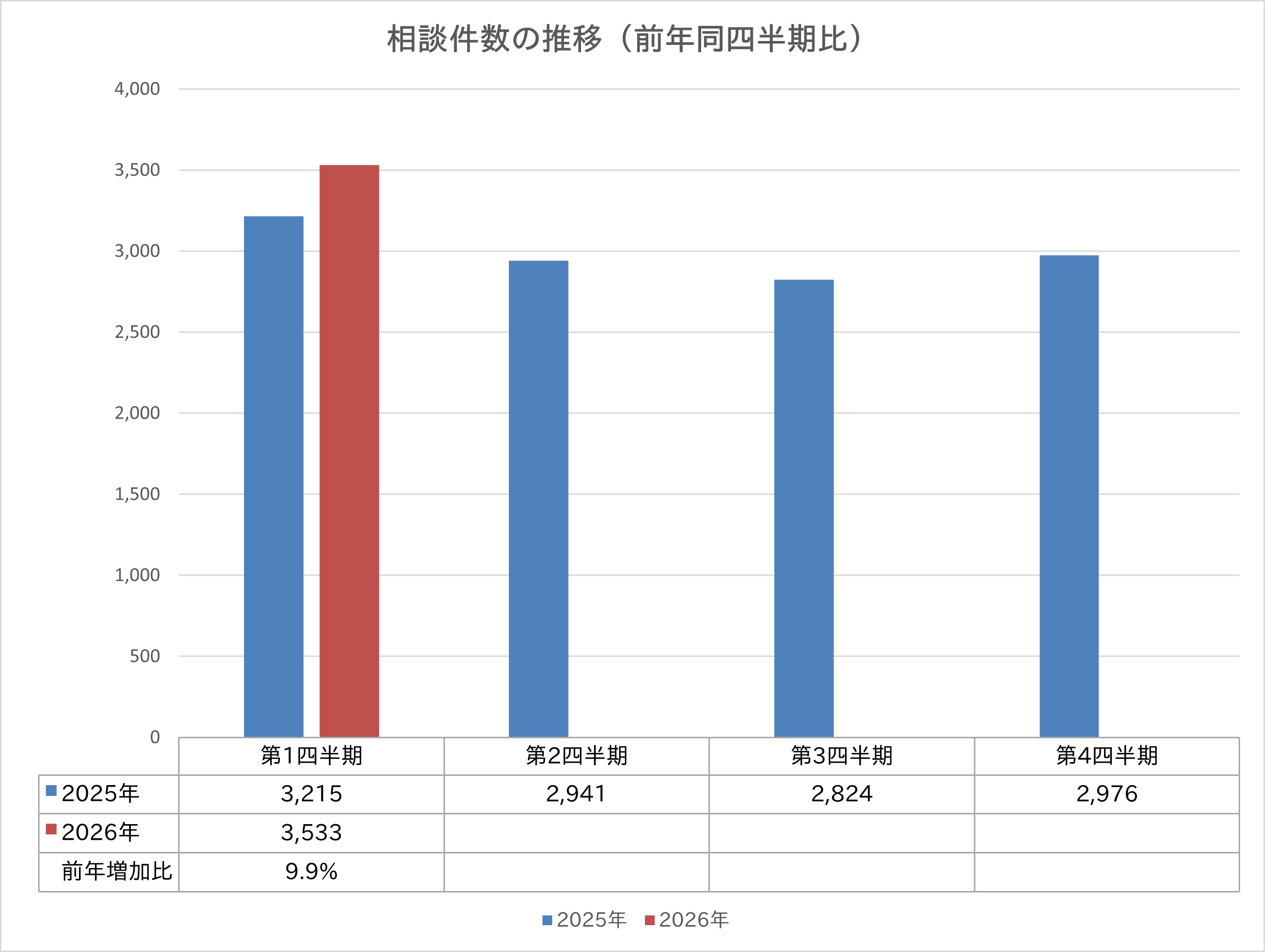 今四半期の相談対応件数は、前年同四半期比では約9.9%増となっており、ほぼ同様の相談件数となっています。