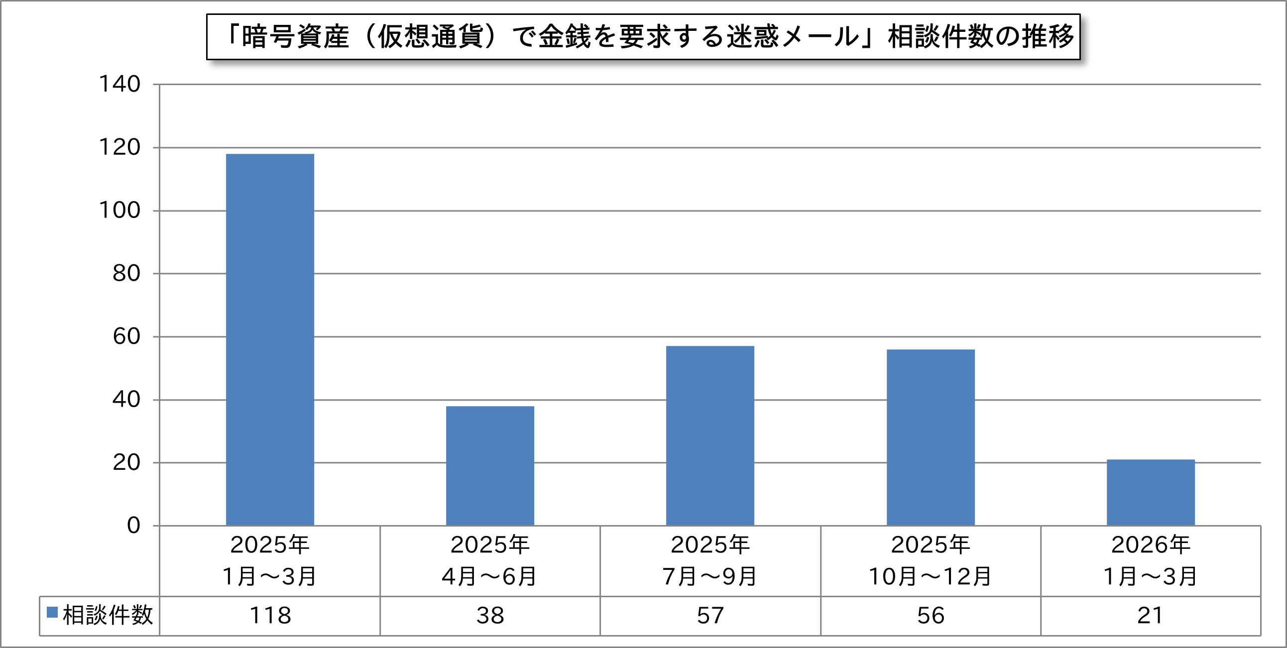 「暗号資産(仮想通貨)で金銭を要求する迷惑メール」相談件数の推移