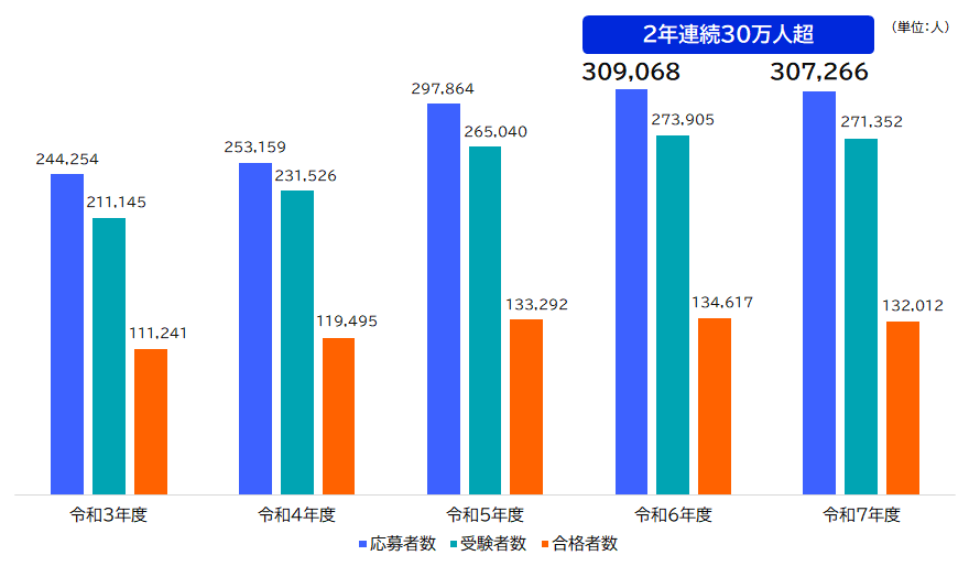 なお、令和7年度の合格者数は132,012人で、合格率は48.6%でした。